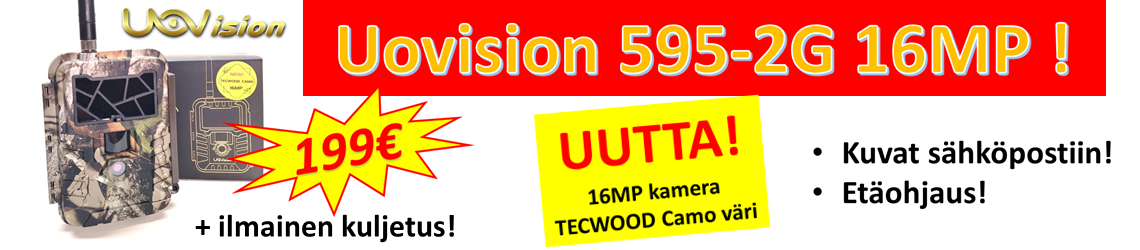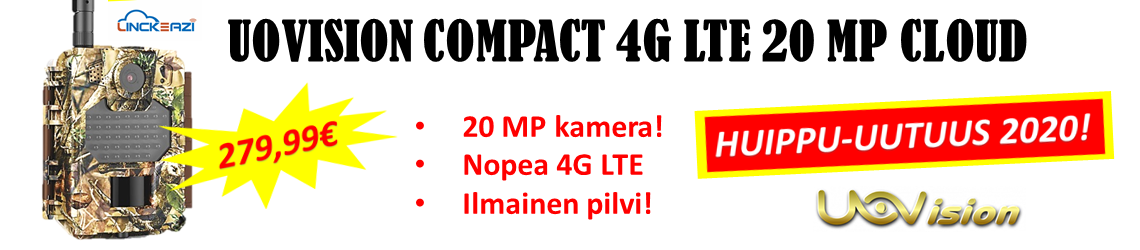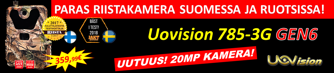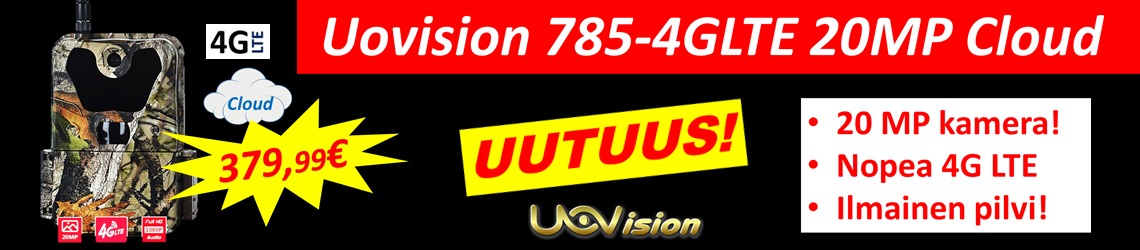 Uovision testivoittaja riistakamerat ja tarvikkeet löytyvät laajasta riistakamera valikoimasta. Vuoden 2020 juhlamallit ovat varustettu 20MP kuvaresoluutiolla ja videon lähetyksellä.